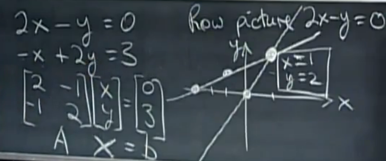 - 行图像是两条直线,方程组的解是两条直线的交点(1,2).