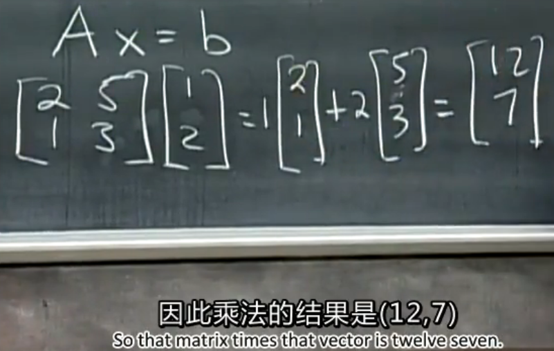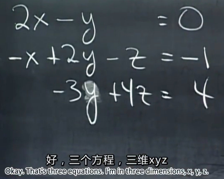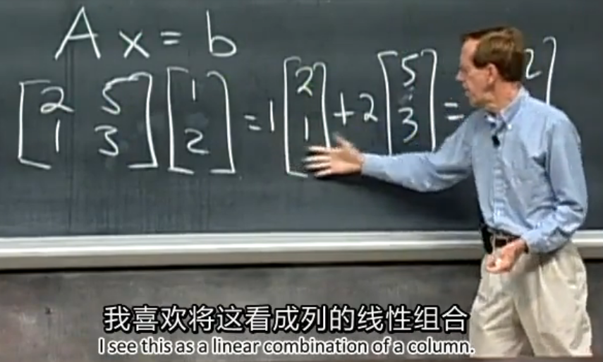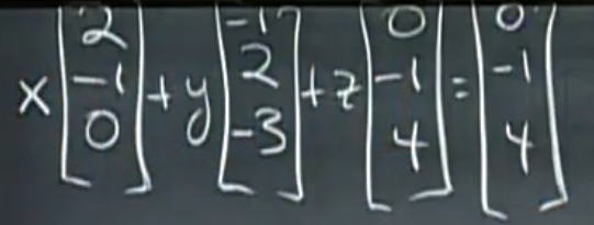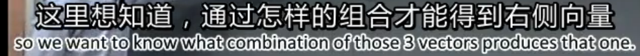 即:对于3个3维列向量而言,什么样的线性组合能够把左边的3个向量组合成右边的那个向量。