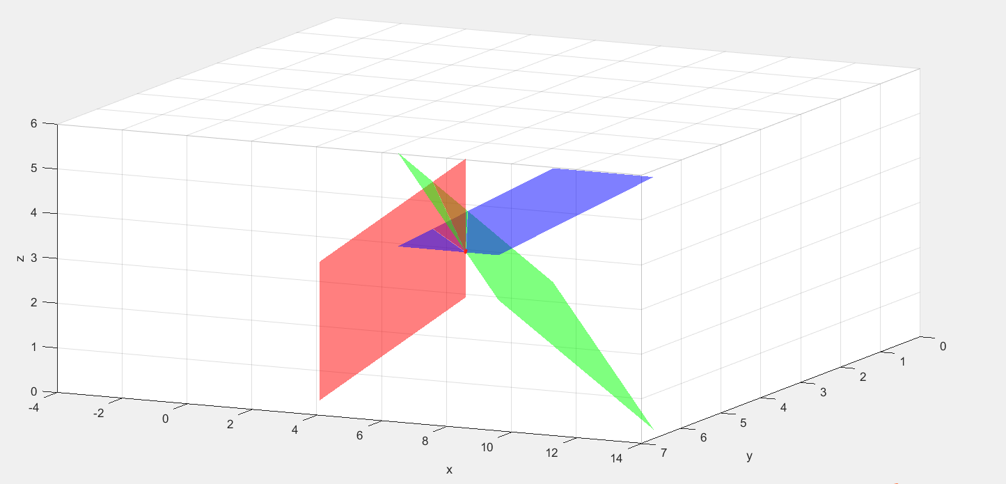 用matlab代码可视化方程组的解(3个平面交于一点的解):