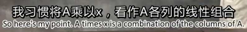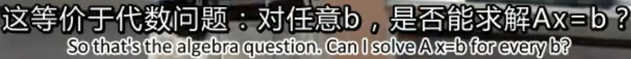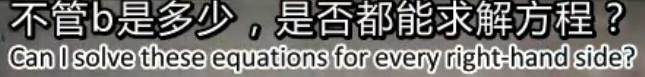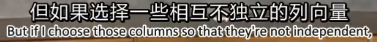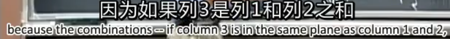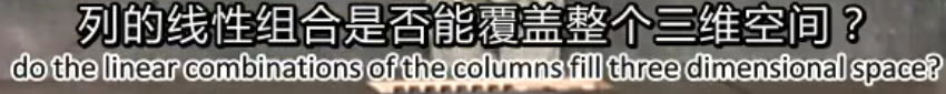 - 在3维中,对于一个矩阵的列向量而言,它们不同的线性组合可以得到整个3维空间。
