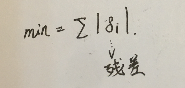 所以,现在我们让残差加上绝对值最小。