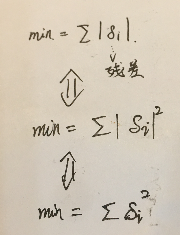 用残差之和去评判近似函数的好坏好像不是太好,因为残差有正有负假如只是简单的进行求和的话那么正负残差可能会抵消,而实际上残差就在那里,并不是0.