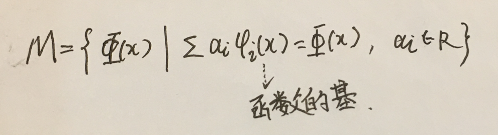 3.函数Φ(x)代表一个函数空间(是一个线性空间·),它是由函数的基Ψ(x)所张成的函数空间。