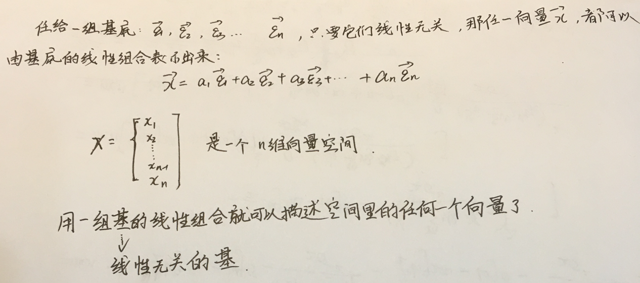 给了n个线性无关的向量相当于给了一套标架,这n个线性无关的向量组叫做一套标架,不是正交的向量组也可以建立坐标系用于描述平面或者空间中的点、图形等几何上的东西,但是用不是正交的2个(或者多个)线性无关的向量组描述一个几何图形的时候,就 不是我们常见的东西了,比如描述一个平面上的圆的时候,这个圆看起来可能像椭圆,球的话不是球,是椭球。