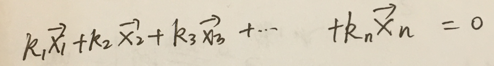 如果存在一组不全为0的系数使得下式成立的话那么就是线性相关否则就是线性无关。