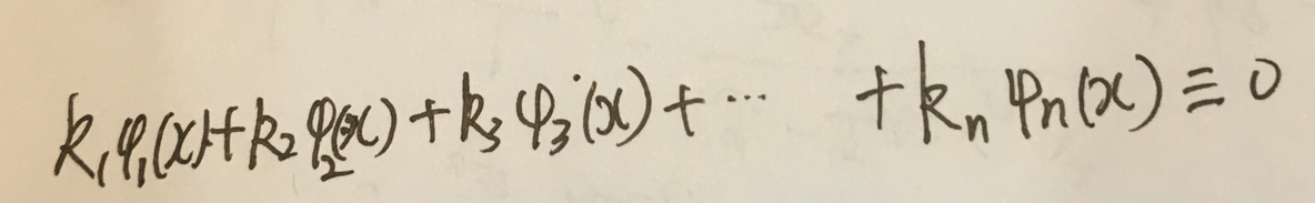 把上式换成函数的线性相关和无关的判断的式子: