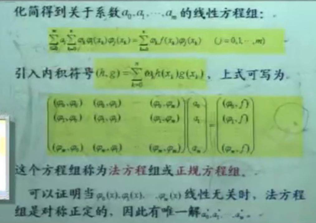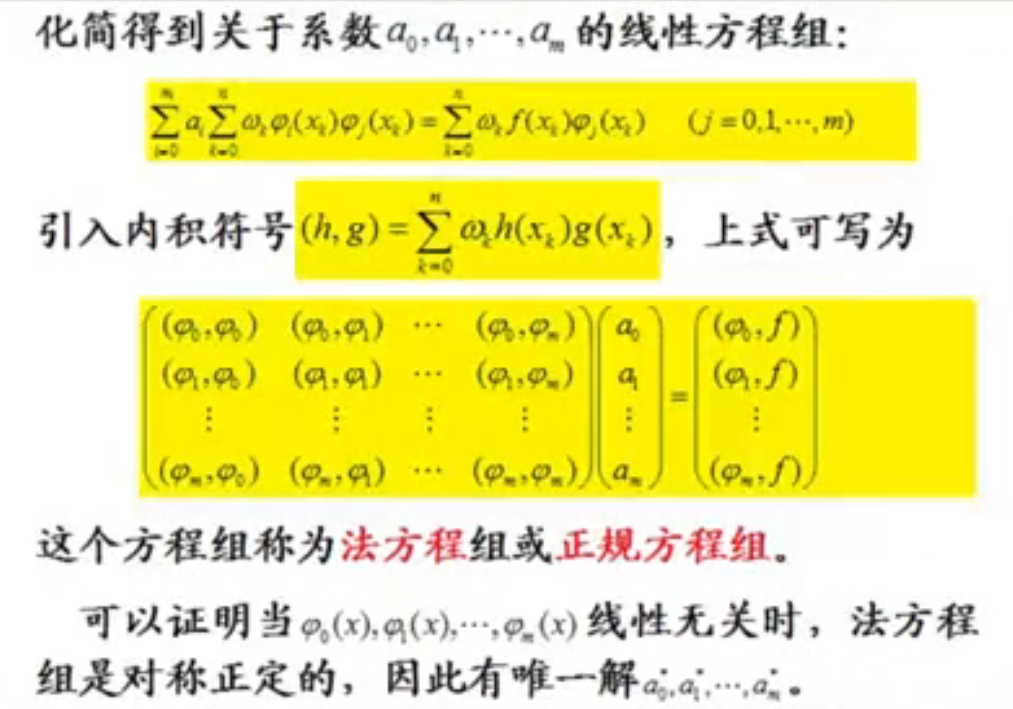 4.法方程中所有的内积都要用前面的内积公式算。