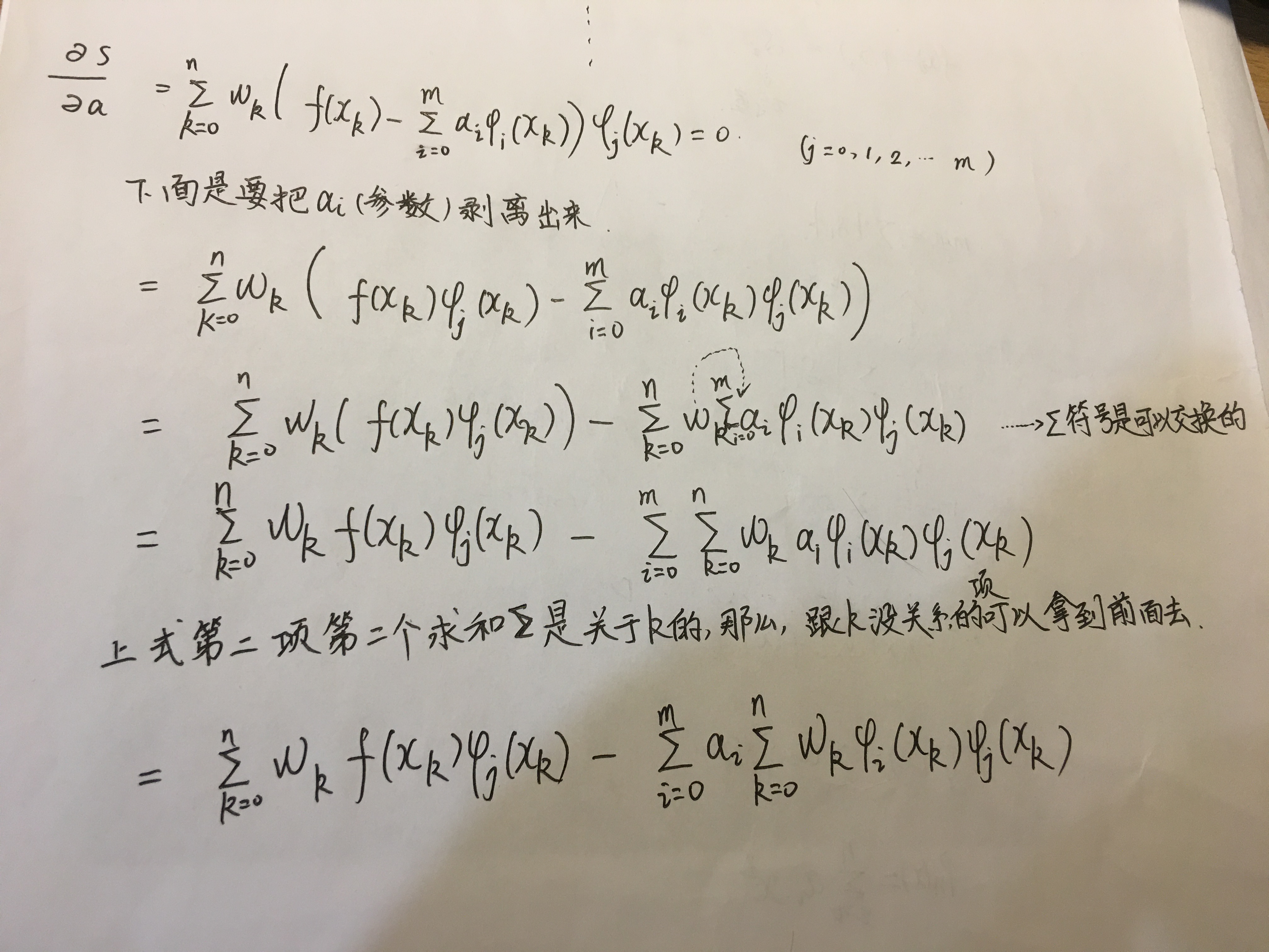 3.关于未知数a0,a1,...am是线性方程组的推导: