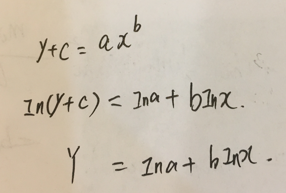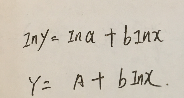 这就化成了线性模型了,就可以利用线性最小二乘进行求解了。说明,y=a*xb是可转化的。此时的基底是:1,In(x)