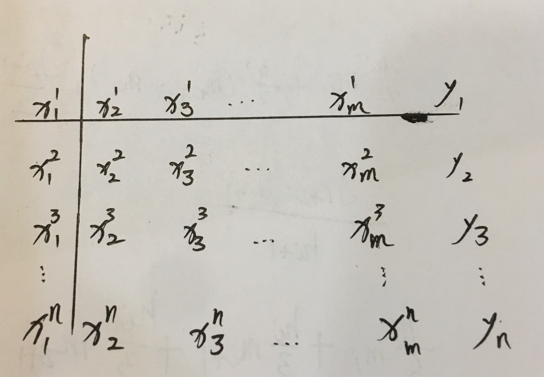 每个样本都有m个特征(自变量)