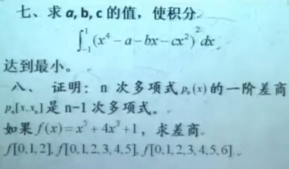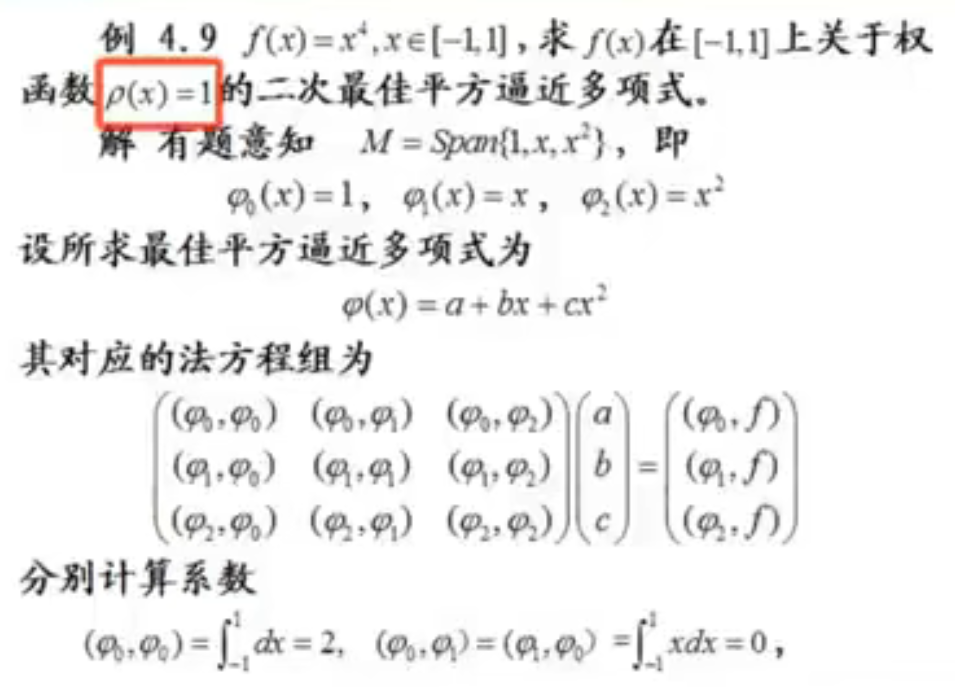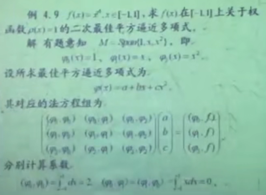 1.相当于是:求x4关于权ρ(x)=1在[-1,1]上的最佳二次平方逼近。