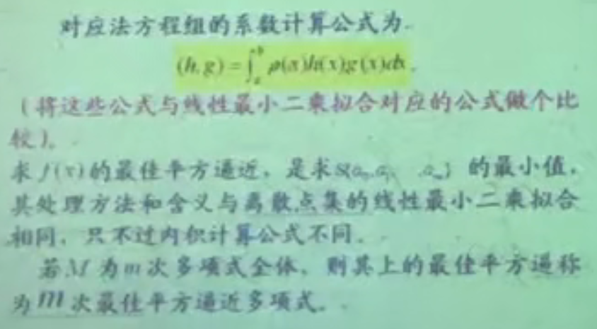 1.要做最佳平方逼近的话,就要给定3样东西:区间,原始函数,权。