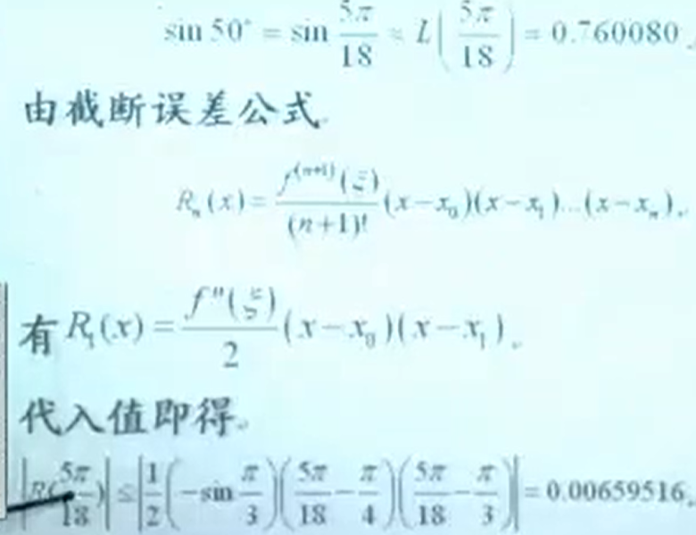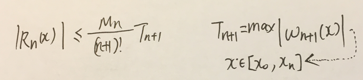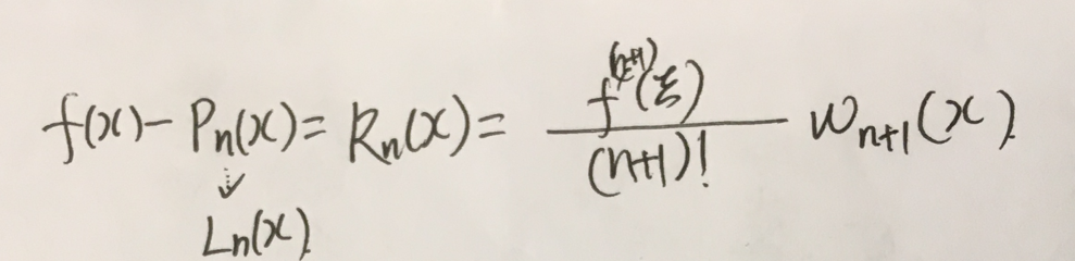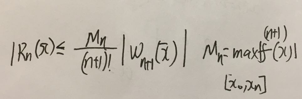 3.在计算插值的误差的时候,在一点上的误差和一个区间上的插值误差分别按照下面两个式子进行计算: