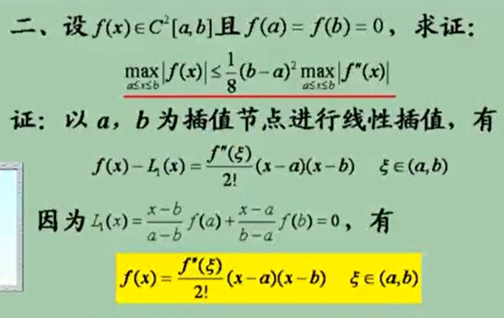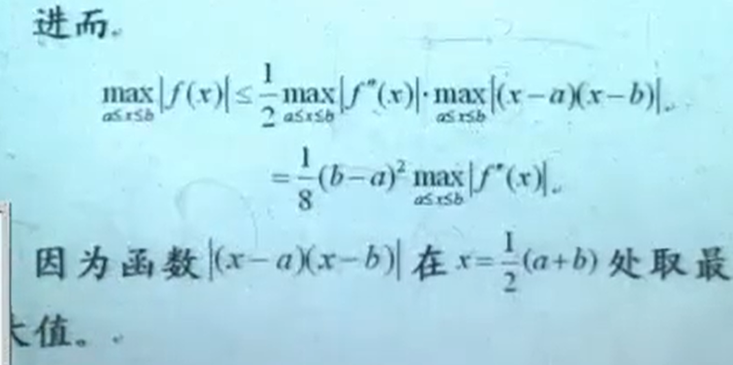 1.余项中的导数是2阶的时候,考虑插值是1次插值(线性插值)。