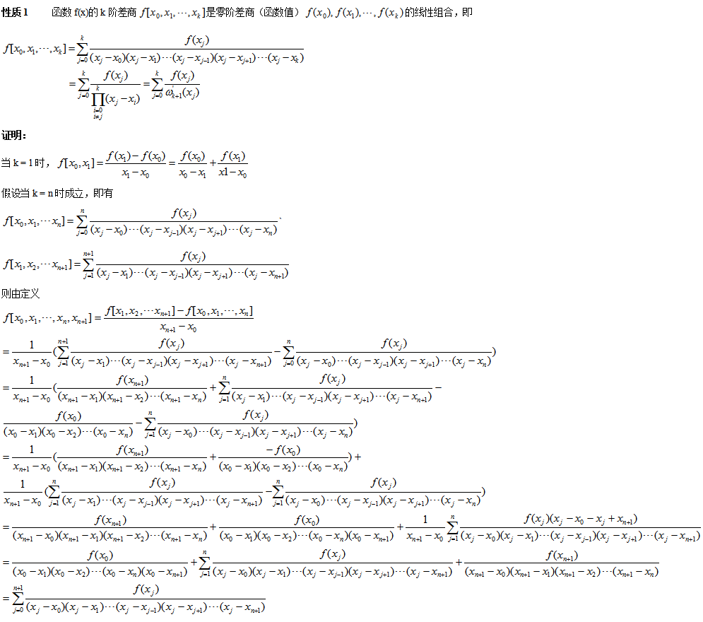 等式右边的差商值,只依赖于等式左边的点的集合,不依赖于点的次序。