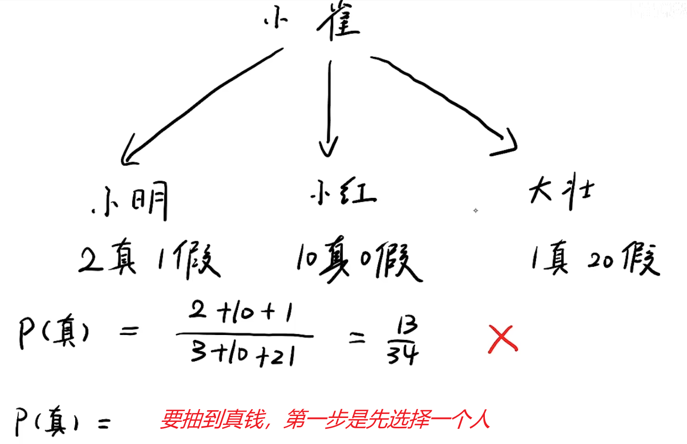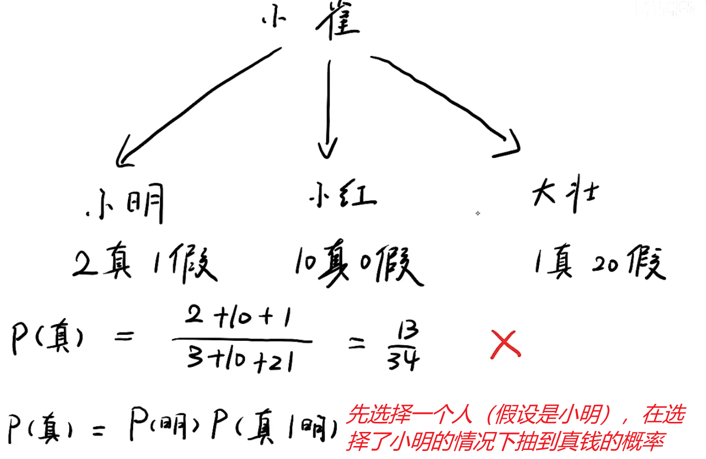 3.假如偷到的钱是真钱,那么这张真钱来自于小明的概率是1/3吗?