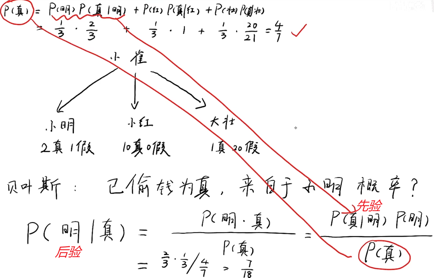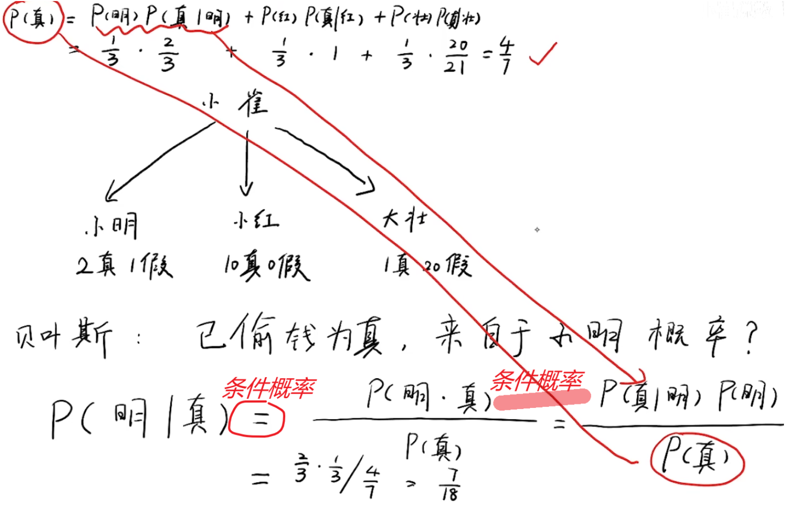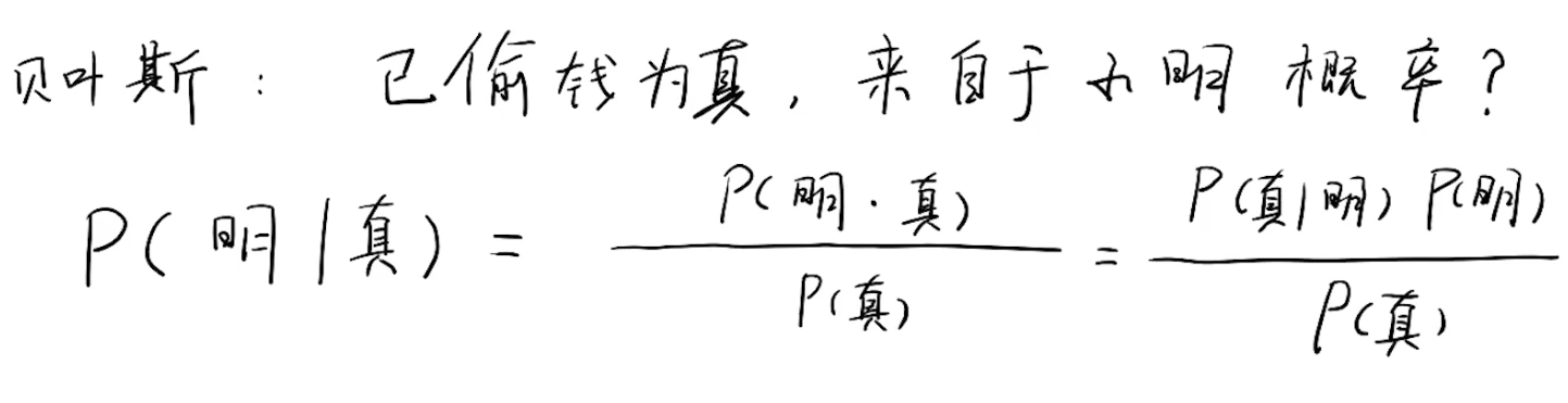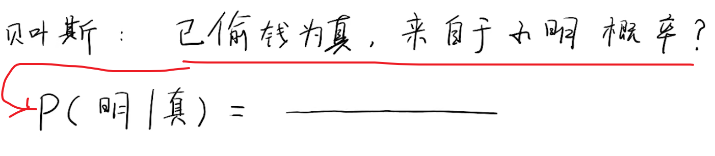 2.贝叶斯公式说的是:我已经偷到了真钱(已经完成了某个行为),这张真钱来自于小明的概率是多少?贝叶斯概率是通过一个结果倒推概率。