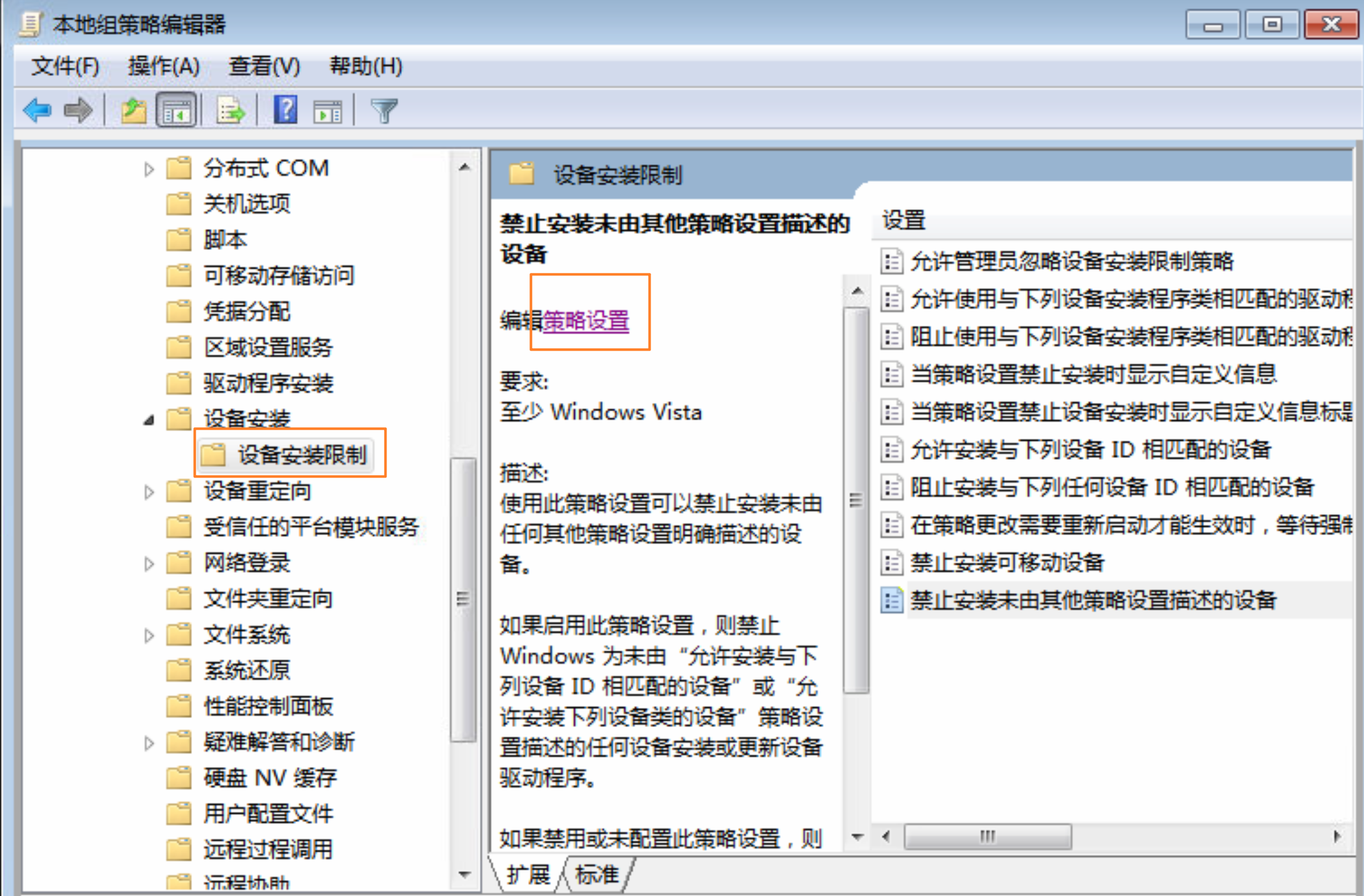 使用此策略设置,可以禁止安装未由任何其他策略设置明确描述的设备。