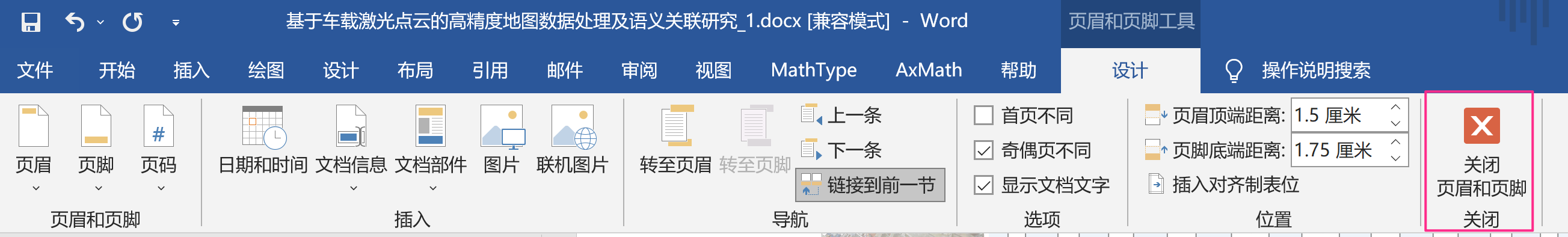 word关闭页眉页脚的编辑状态