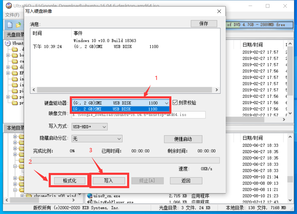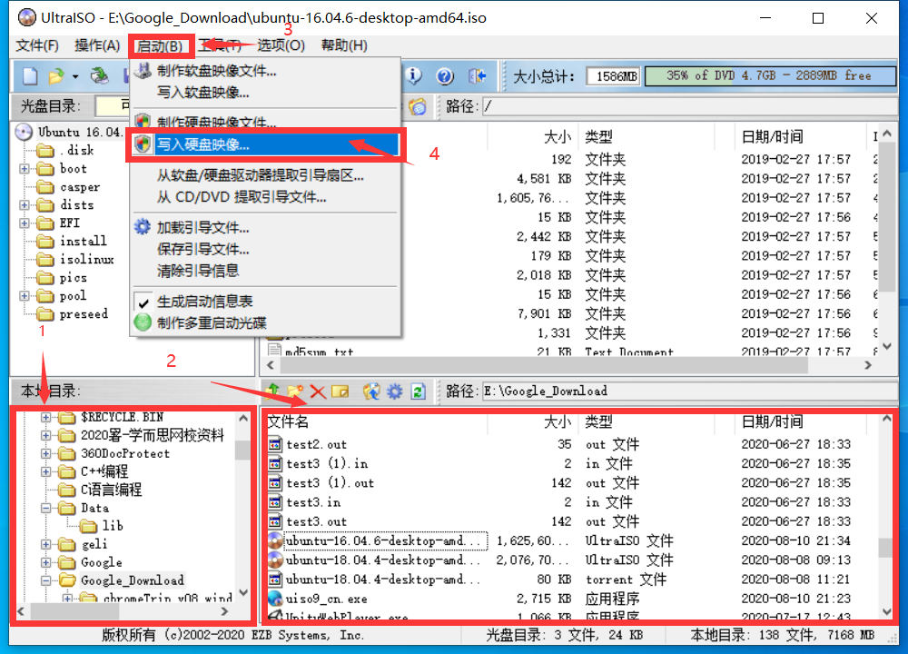 首先进入下载好的“UltraISO”里,然后在左下角的框框里选择iso文件所在的磁盘,再在右边的框框里选择对应的文件夹,双击打开iso文件,点击“启动”,点击“写入硬盘映像”,选择自己想用来作为安装盘的U盘【不要选错了,U盘里的东西一定要备份!】,点击“格式化”,待它格式化后点击写入,等上几分钟,安装盘就制作完毕了。