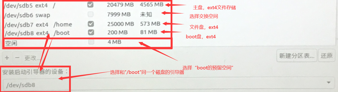 看图片,选择盘,还有,分盘就要点右下角的“+”号,分配空间。 记得留下boot的启动空间,否则你就会看到这一条↓ 点击继续,设置时区,进入安装。 安装完成后点击“立即重启”。等待。。。 如果卡死超过20分钟了,就强制重启。