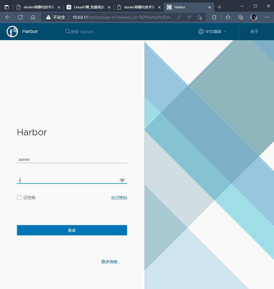 如下图所示,用户名为admin,密码为上面定义的"1"。