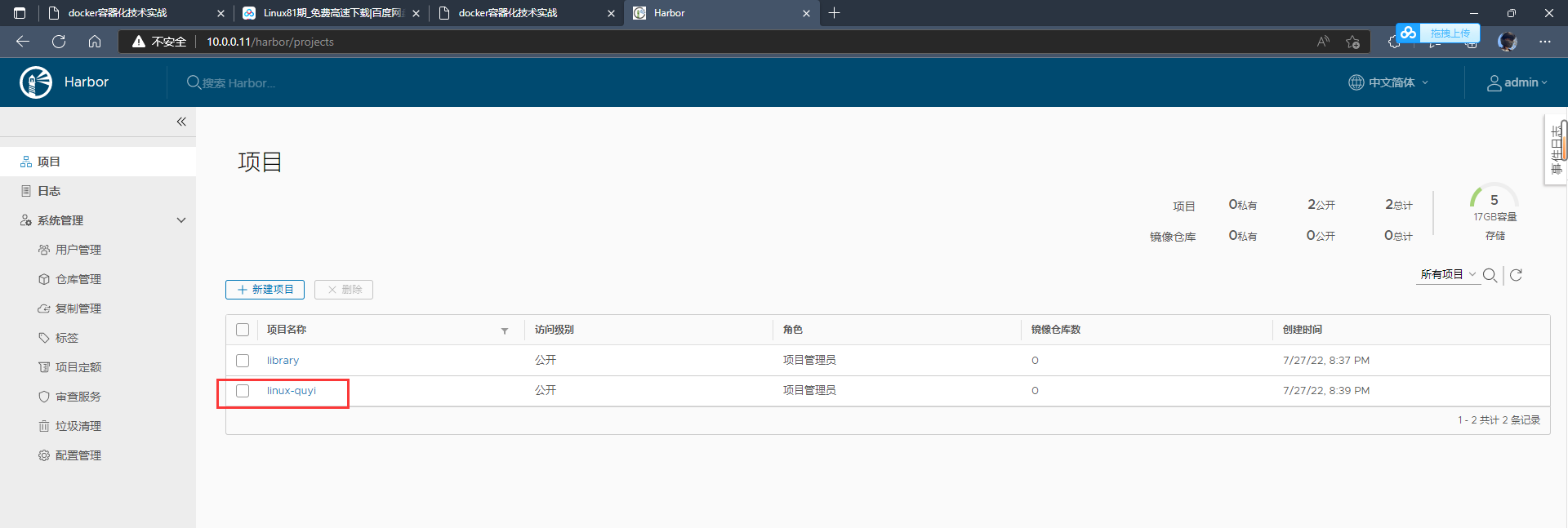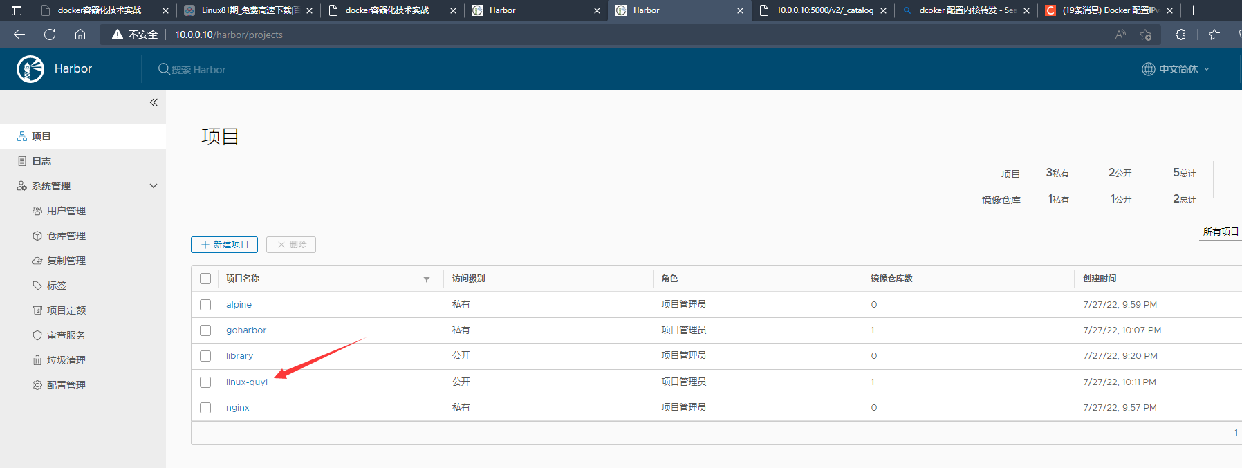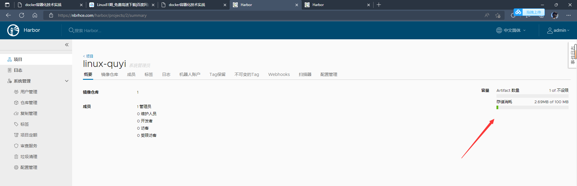 [root@harbor02 ~/harbor]# docker push 10.0.0.11/linux-quyi/alpine:latest