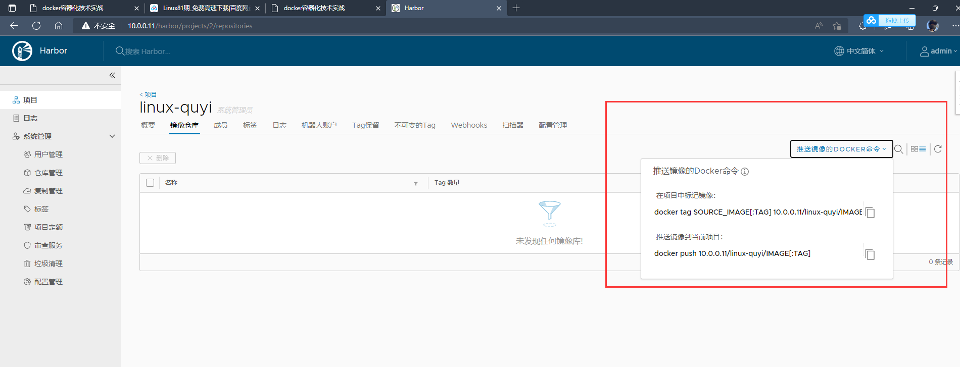 [root@harbor02 ~/harbor]# docker tag alpine:latest 10.0.0.129/linux-quyi/alpine:latest