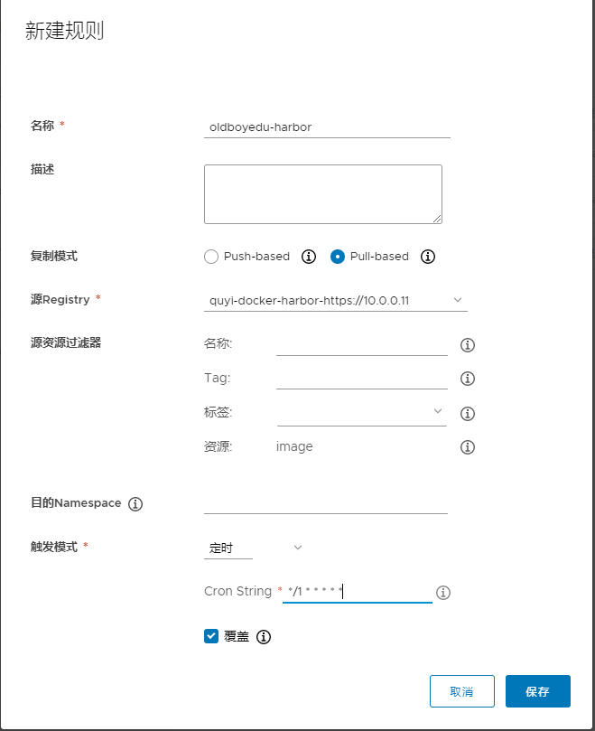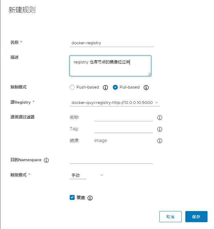 #这里还需要填写一个对方的仓库地址 要把仓库镜像传过去
