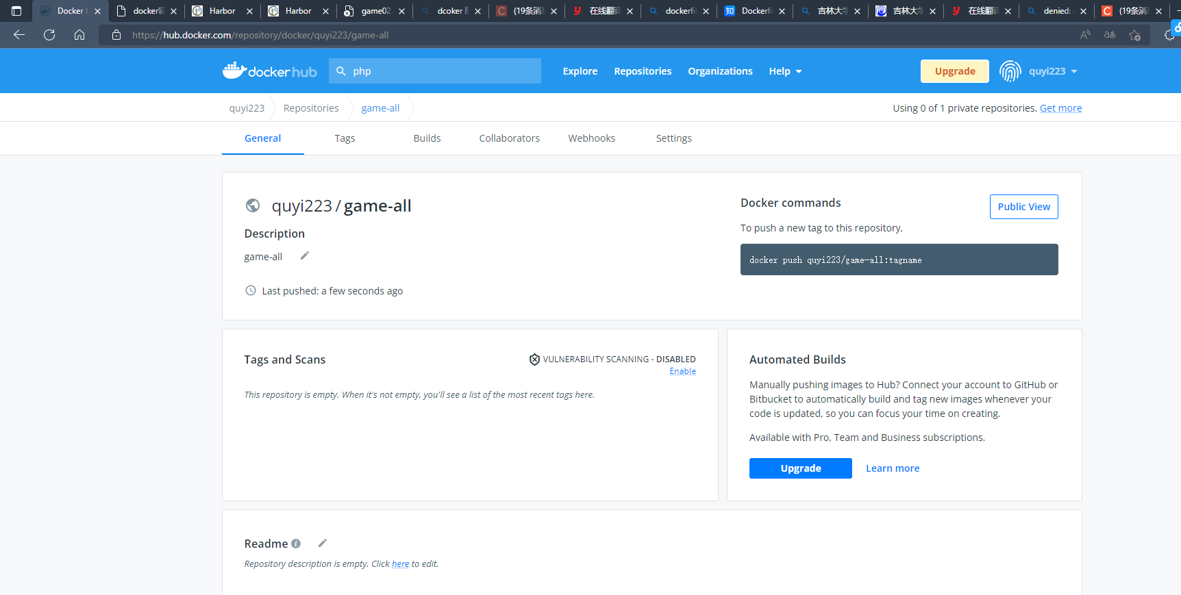 [root@docker01 /game-all]# docker tag game-all:v1.0 quyi223/game-all:gameall_v1.0