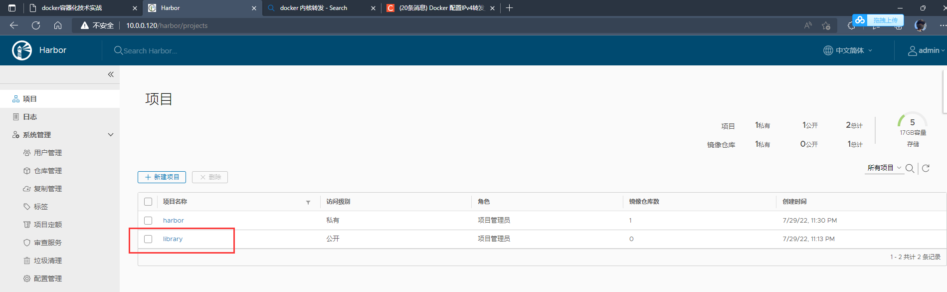 [root@harbor /harbor]# docker push 10.0.0.120/harbor/kod:v5.0