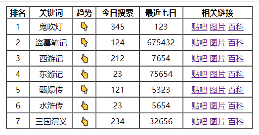<td><a href="#">贴吧</a> <a href="#">图片</a> <a href="#">百科</a></td>