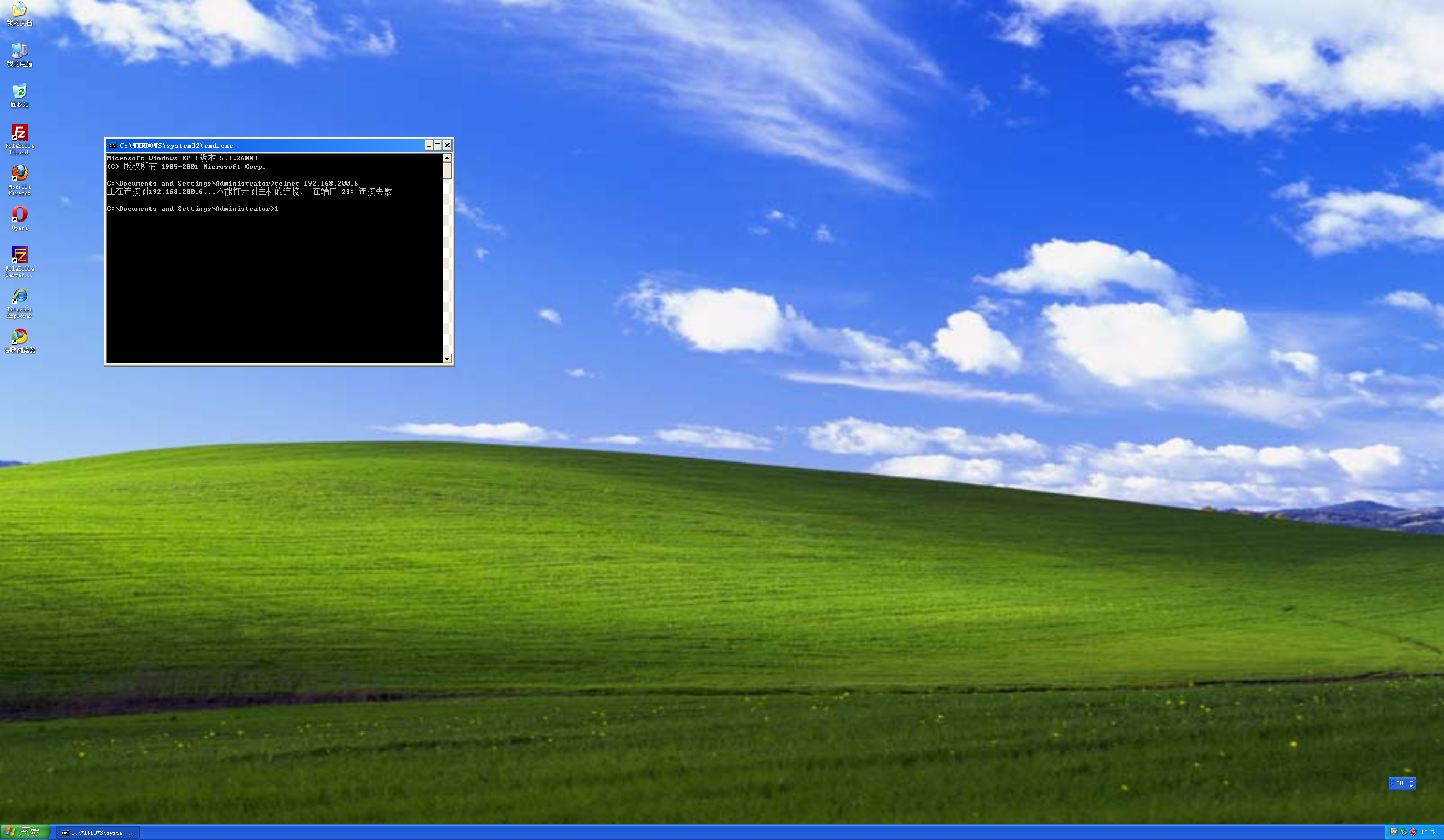 打开WinXP攻击机,使用ping命令检查与kali的连通性