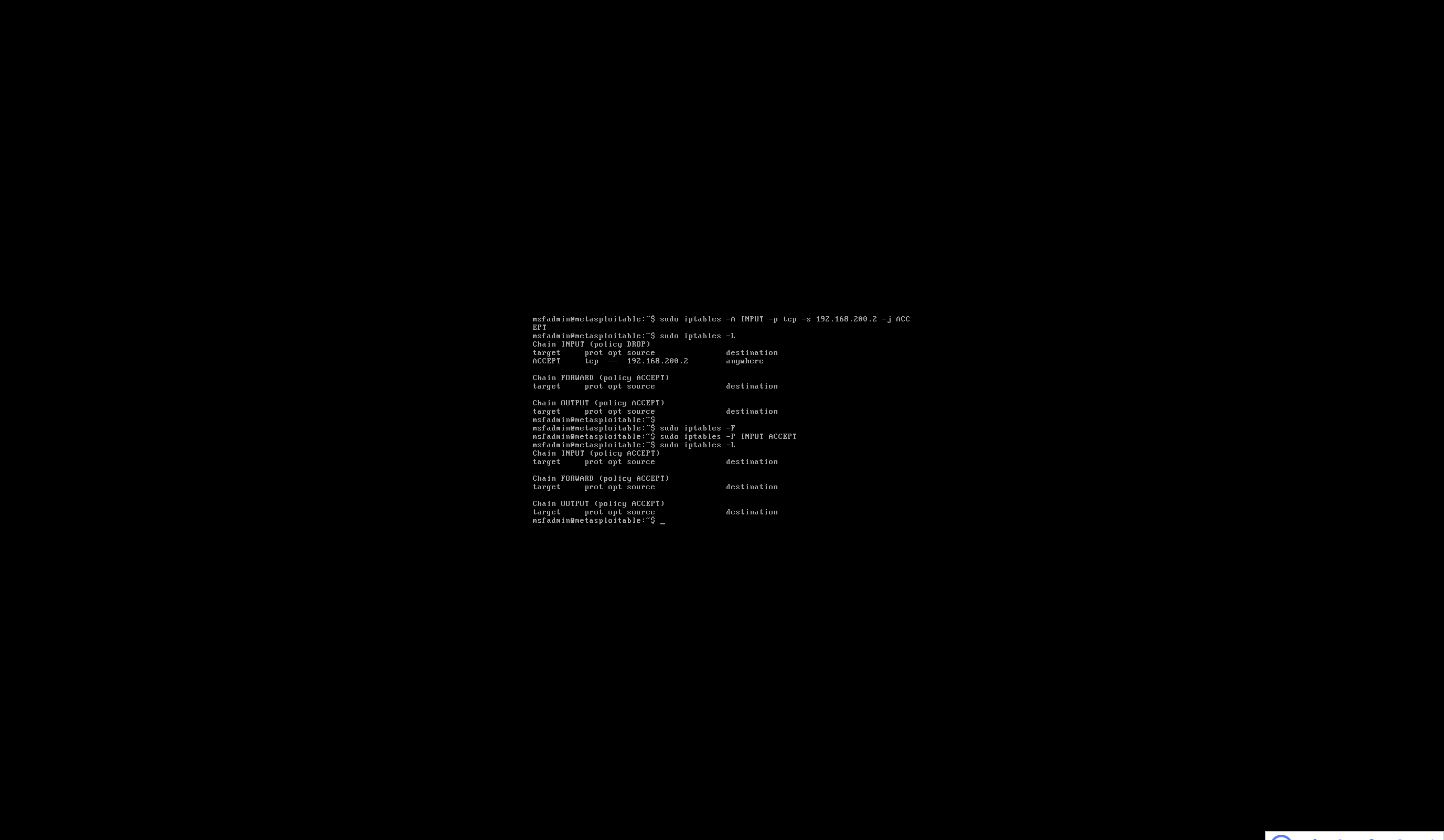 最后,在Ubuntu中输入命令 iptables -F 和 iptables -P INPUT ACCEPT,恢复最初的状态。