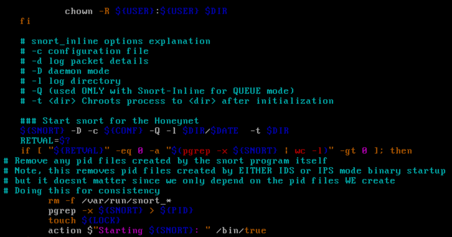 执行命令vim /etc/init.d/hw-snort_inline打开snort_inline的脚本文件,可以看到到实际执行的参数。