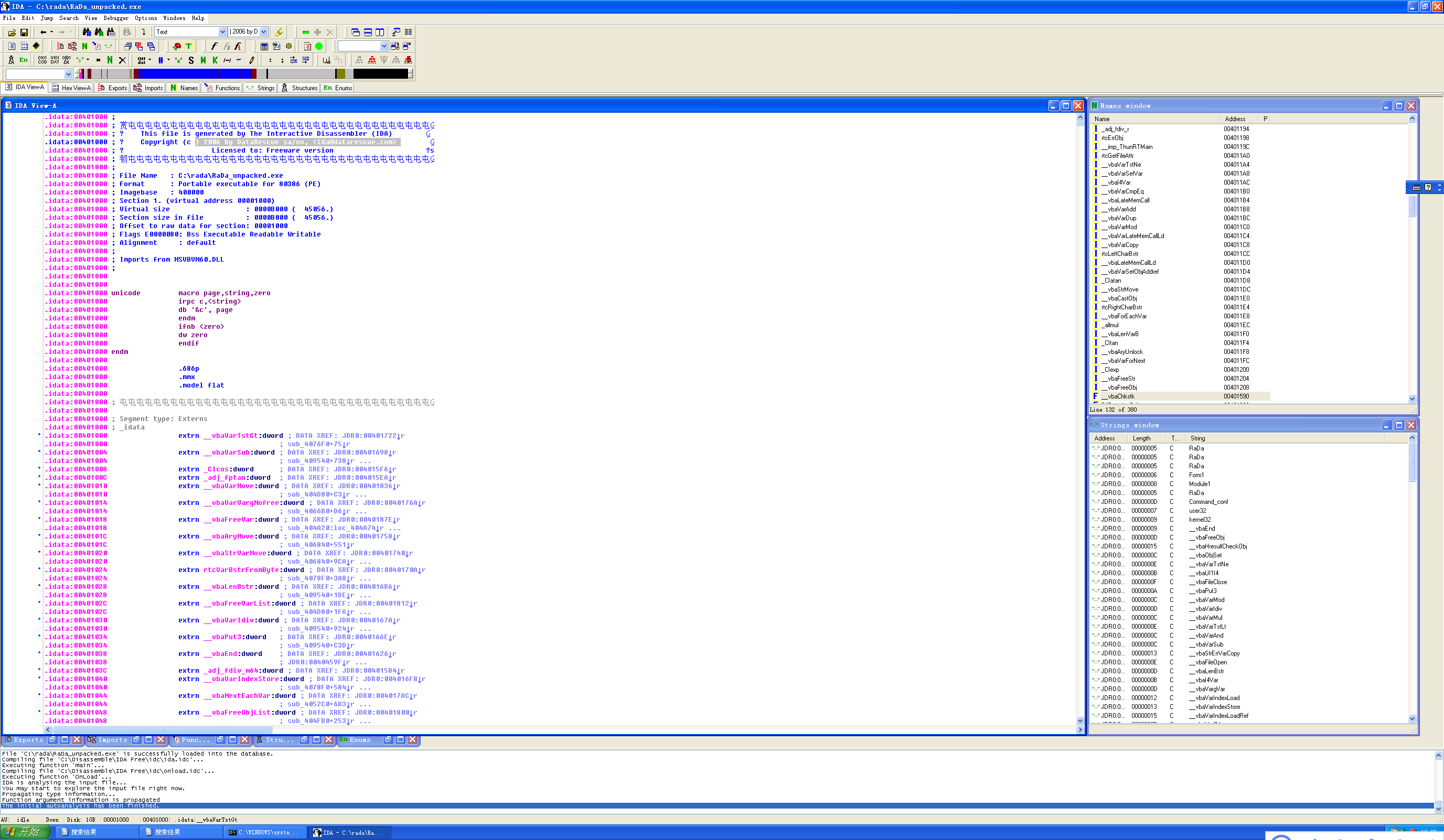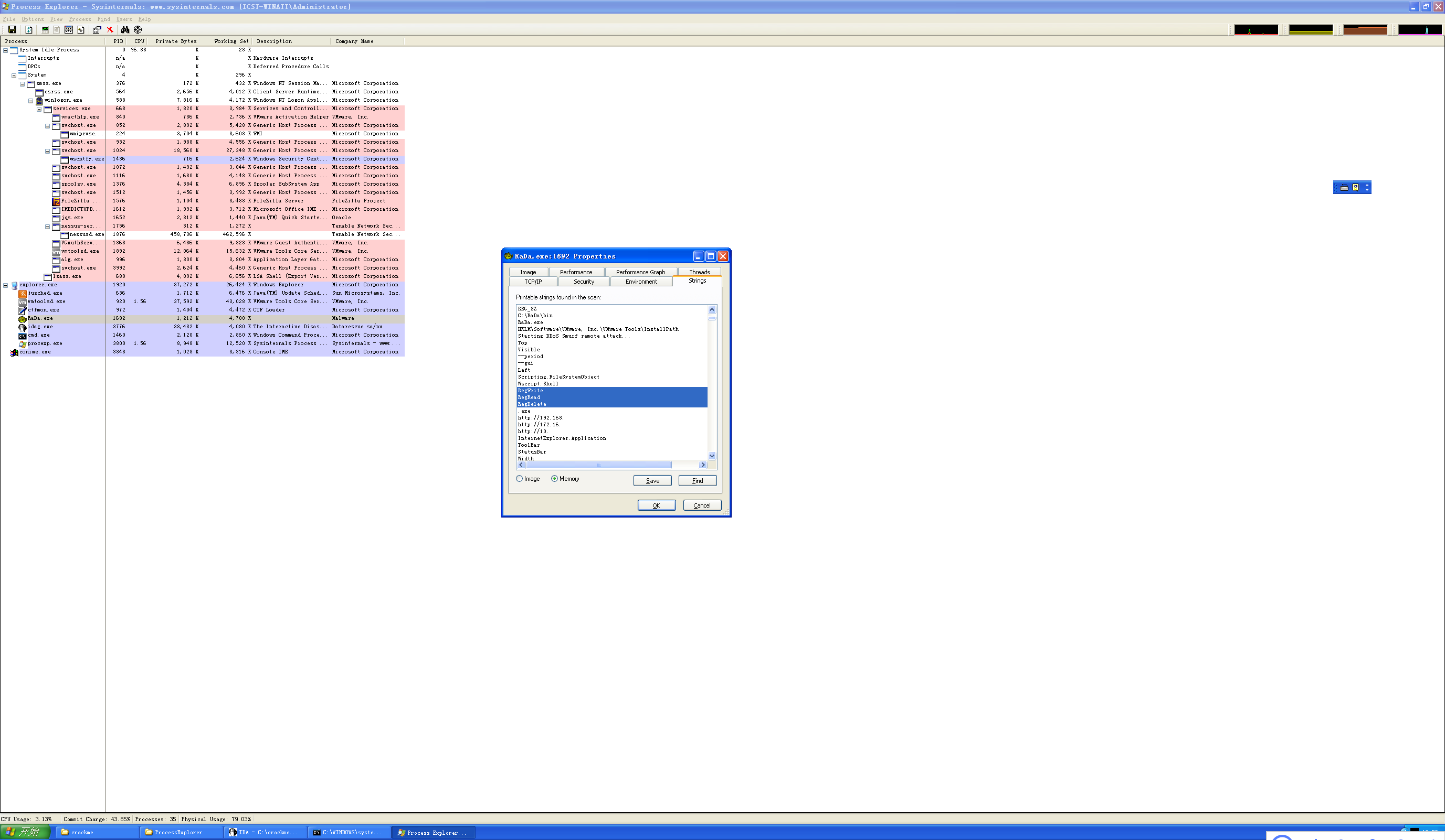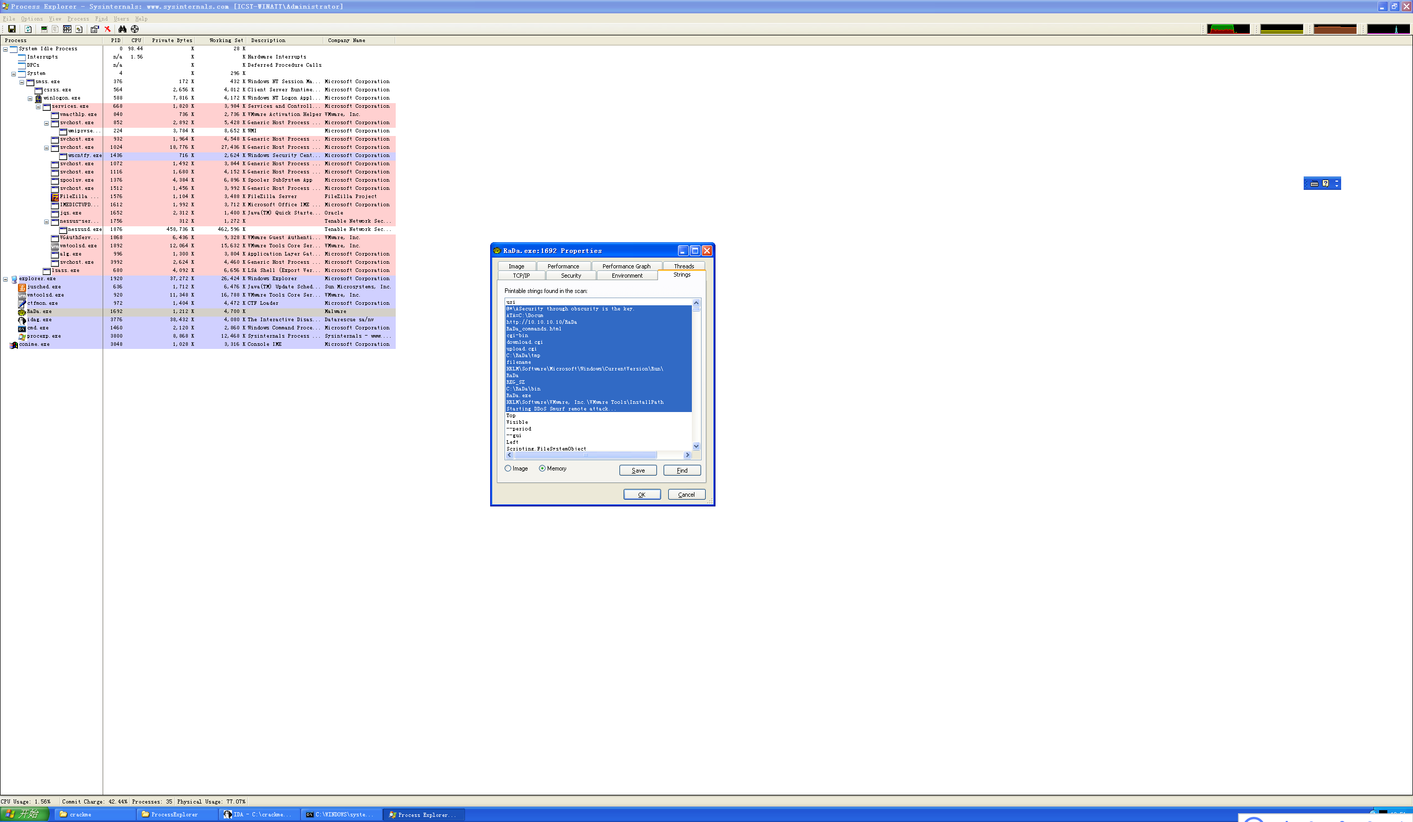 使用process explorer监视RaDa,然后查看其字符串内容,