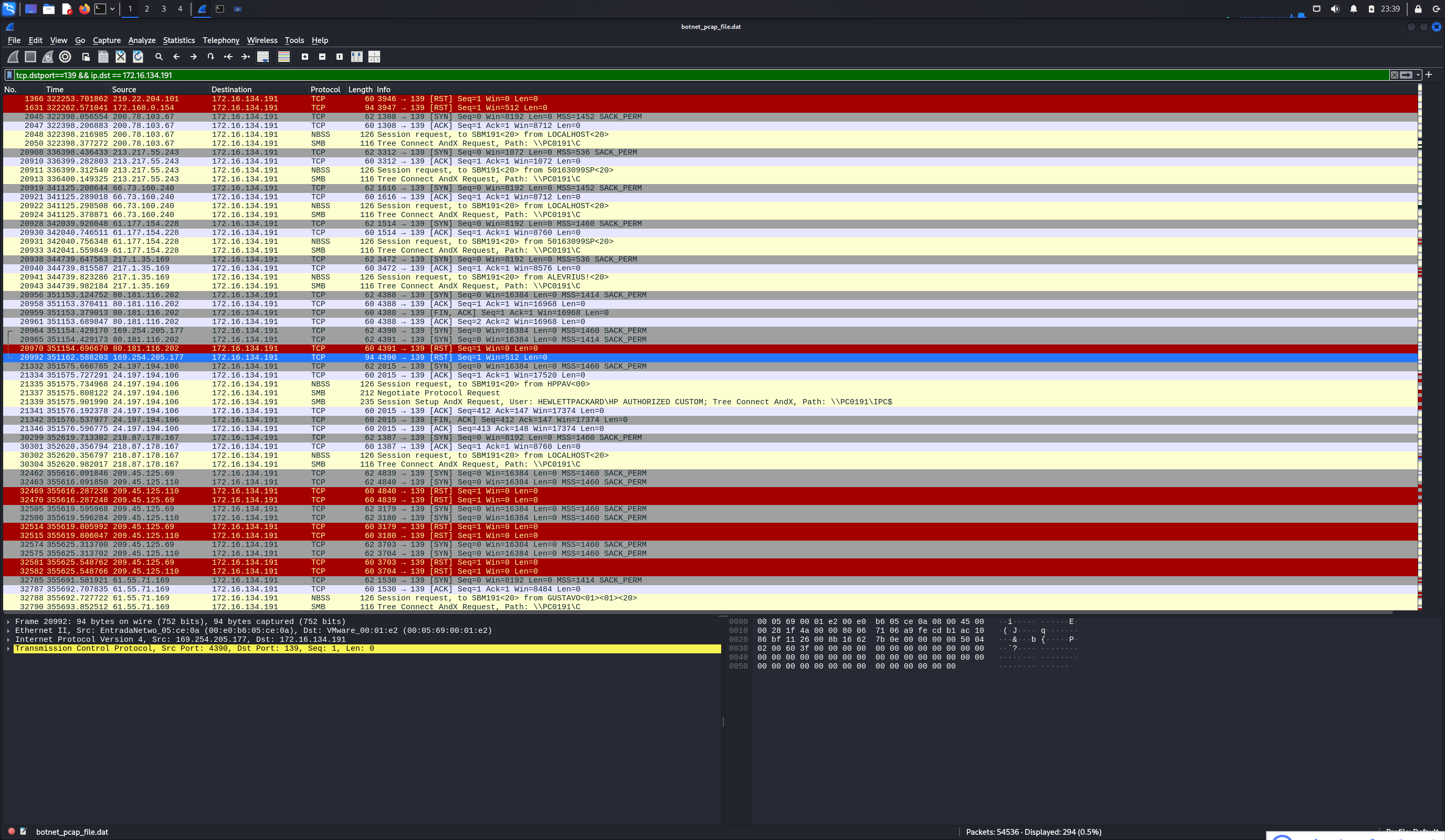 tcp.dstport==139 && ip.dst == 172.16.134.191