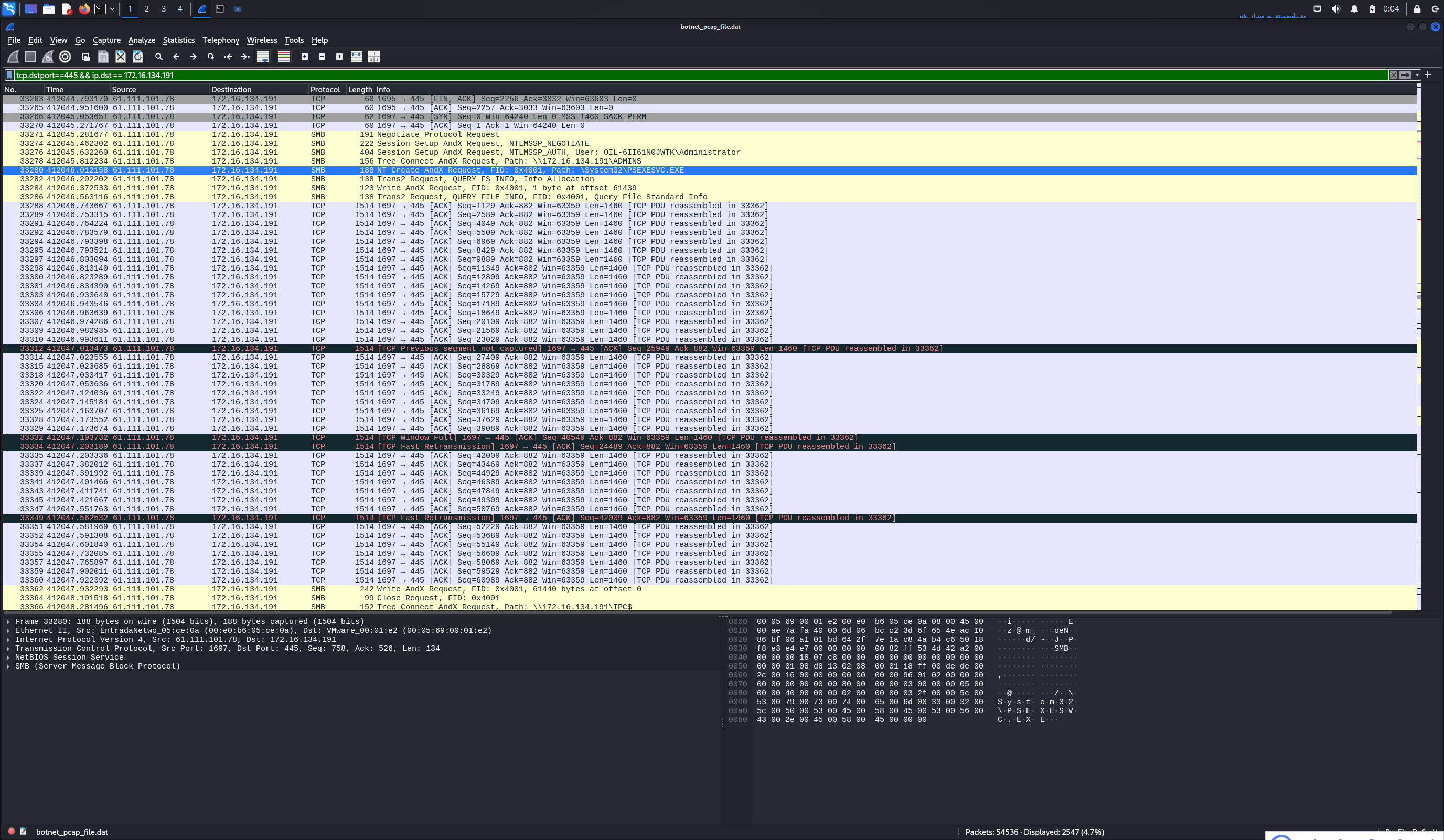 tcp.dstport==445 && ip.dst == 172.16.134.191