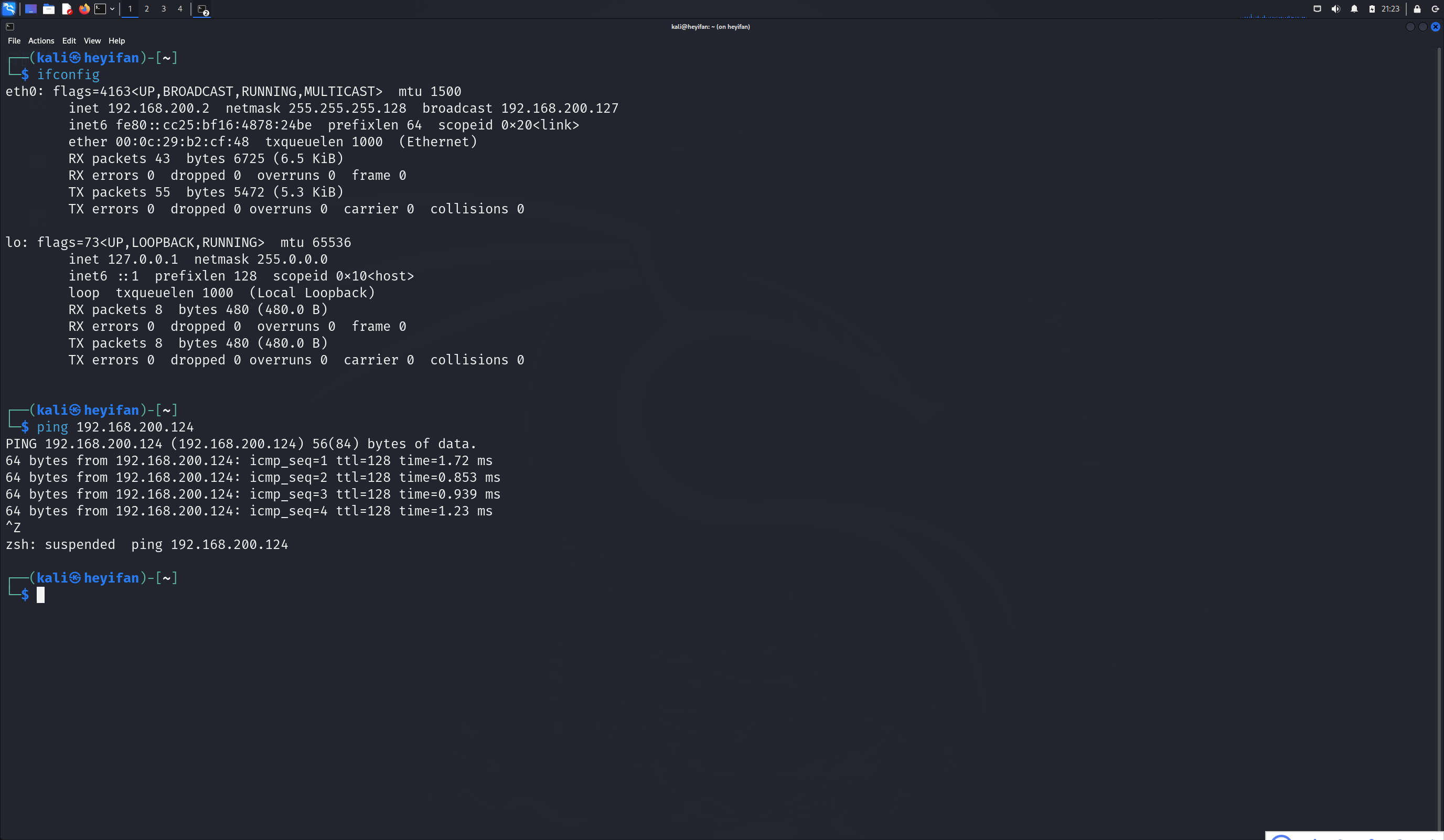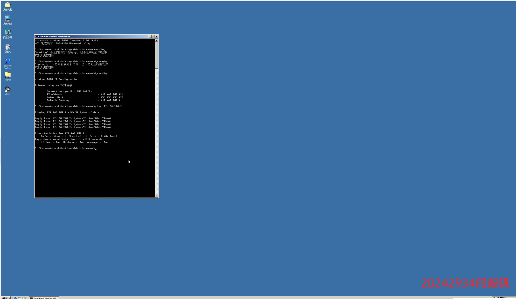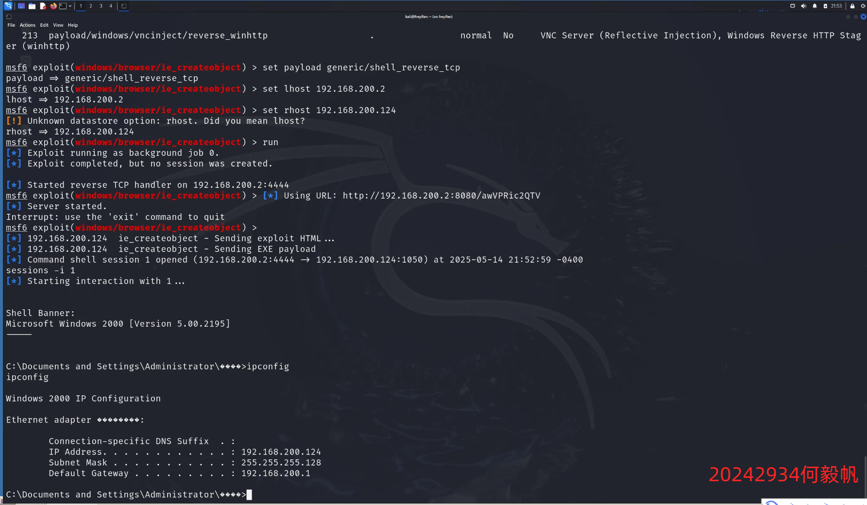 步骤如实验1一样,攻击方:Kali,防守方:Windows2k,IP地址分别如下