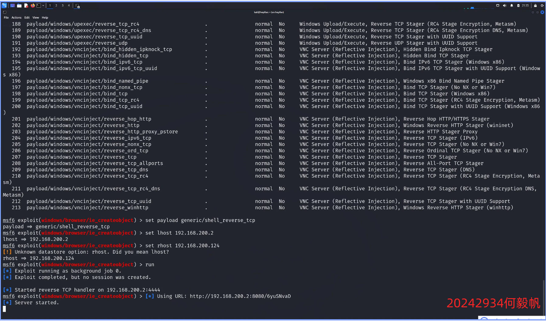 任务:使用攻击机和Windows靶机进行浏览器渗透攻击实验,体验网页木马构造及实施浏览器攻击的实际过程。