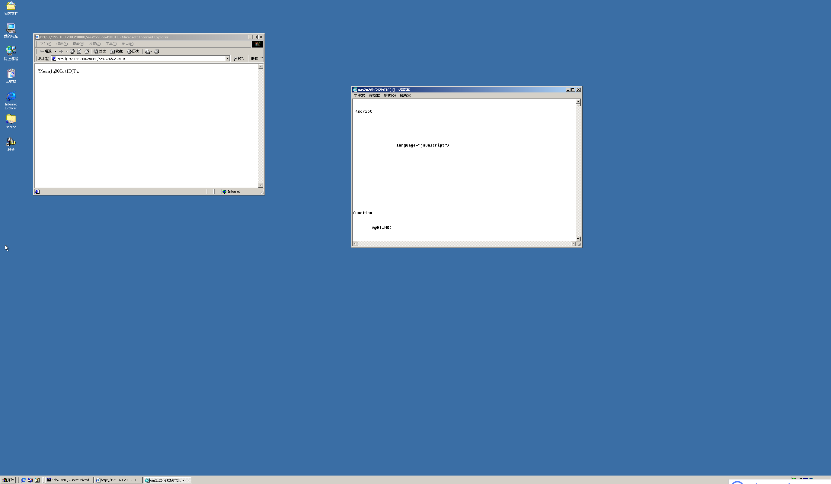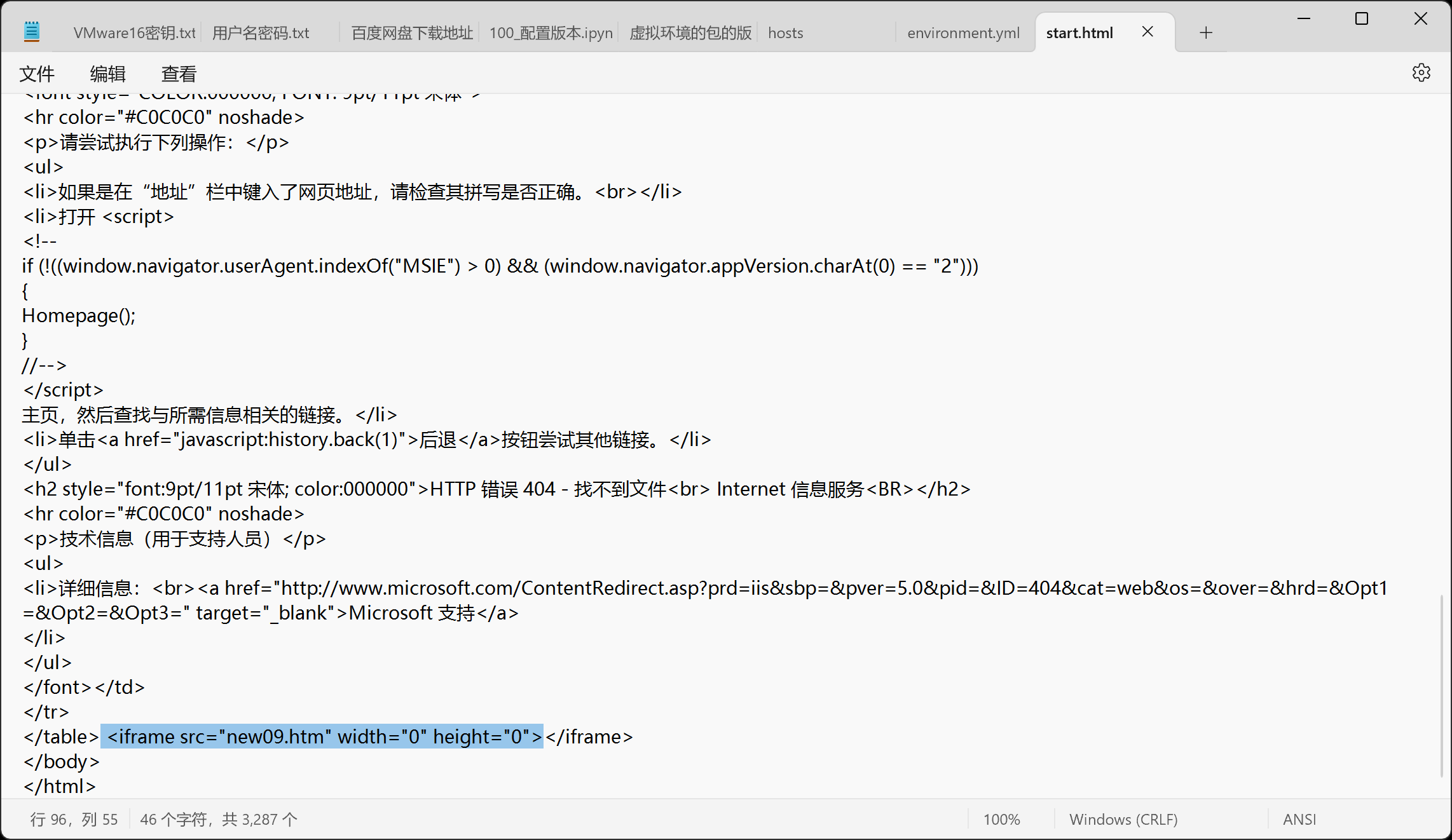 打开网页挂马分析实践压缩包,里面包含了所要分析的程序和源代码,以记事本的方式打开new09.html文件,并记录以下两个网址: