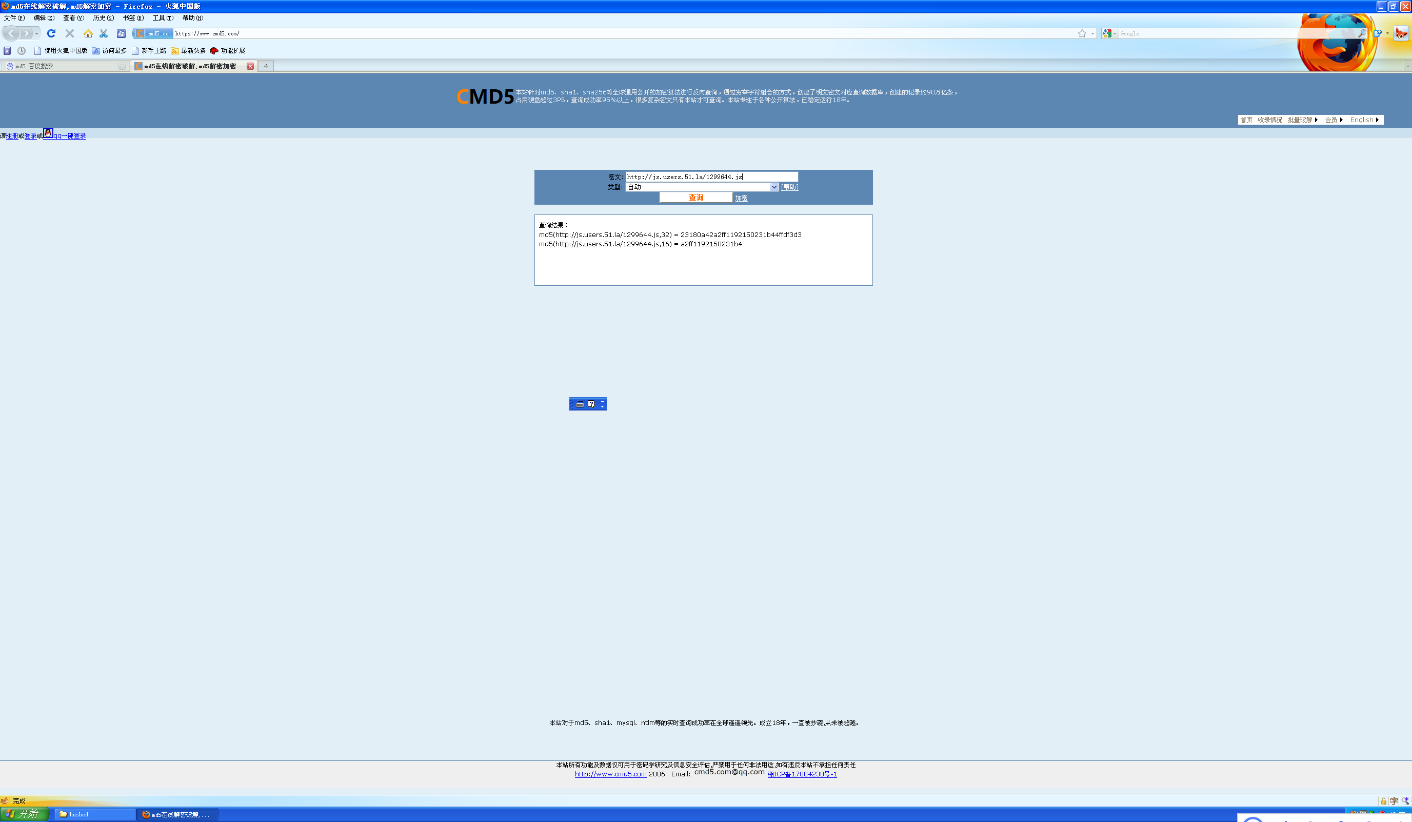 分别对http://js.users.51.la/1299644.js和http://aa.18dd.net/aa/kl.htm进行MD5运算得出散列值: