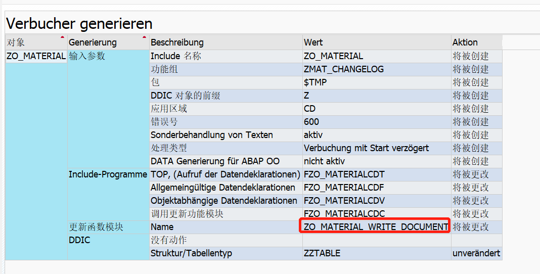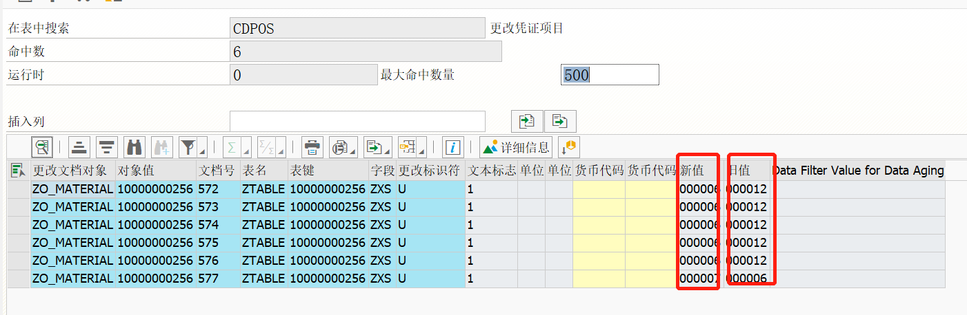 其中xztable 为变更后的值,yztable为变更前的值,objectid为本次记录对象的ID,TCODE的为变更记录函数调用位置(主要用于区分).