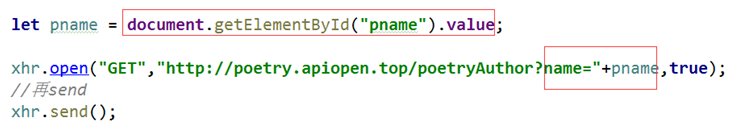 xhr.open("GET","http://poetry.apiopen.top/poetryAuthor?name="+pname,true);