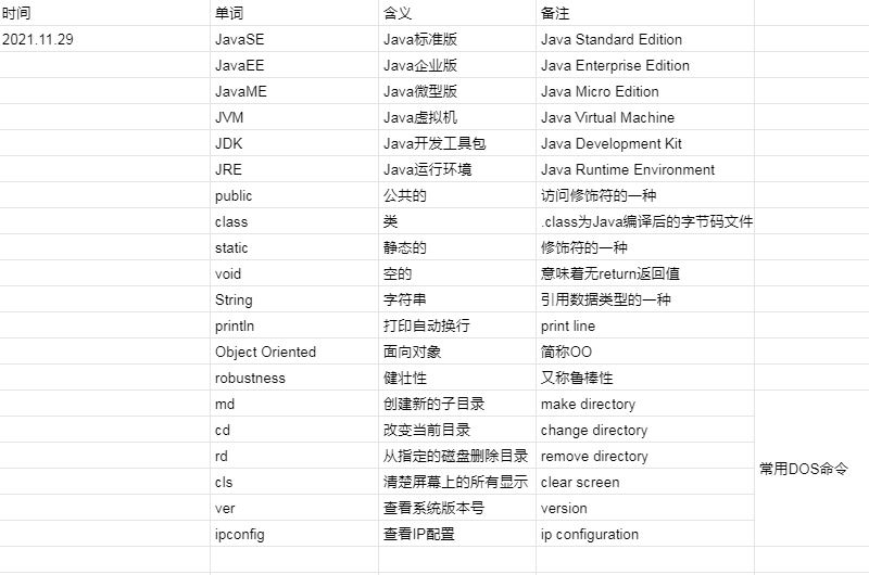 感想:今天正式开始学Java,暂时没有不懂的,不过开始是简单的,万万不可松懈。