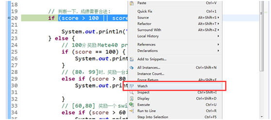 - 执行到断点这行,我们去查看变量,查看表达式的值,从而来判断逻辑是否正确: