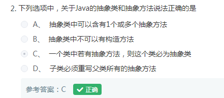 这题A和C其实都是正确的。不过如果改成抽象类中一定含有1个或多个抽象方法,那就是错的,因为抽象类中也可以没有抽象方法。