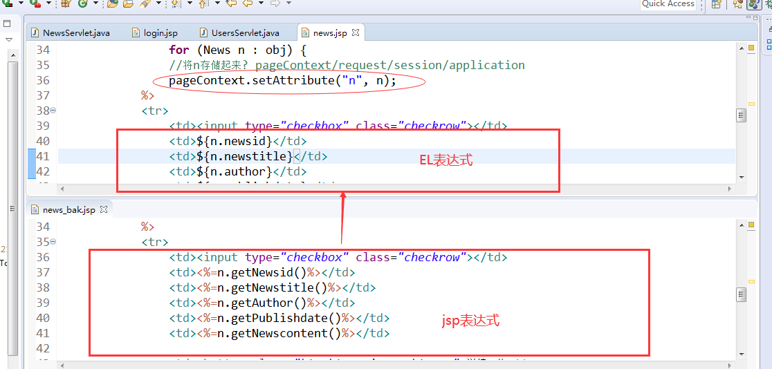EL被用来简化JSP的输出<%= %>,毕竟java代码属于后端部分,写在前端页面不合适。