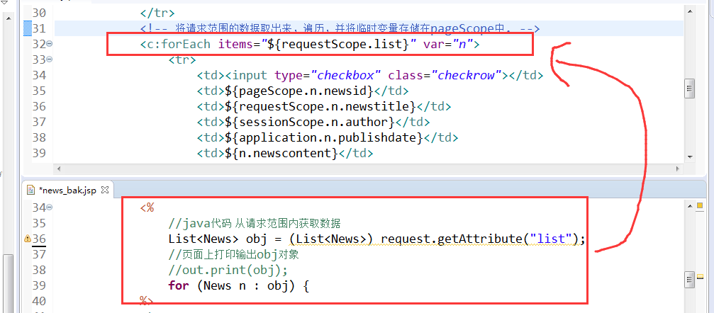 {requestScope.user.pwd} 等价于<%=((User)request.getAttribute(“user")).getPwd()%>