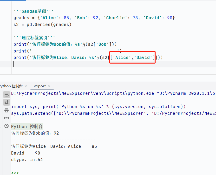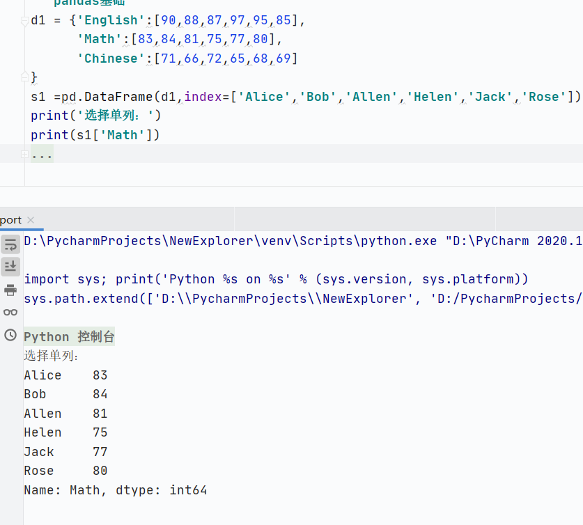 选择单列,返回Series